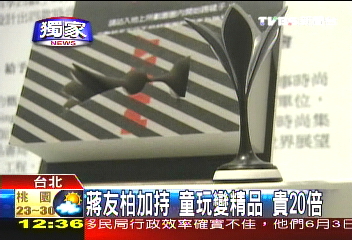 中新網(wǎng)5月14日電 據(jù)臺(tái)灣TVBS報(bào)道,蔣家后代蔣友柏設(shè)計(jì)過許多產(chǎn)品,目前正式跨足臺(tái)灣玩具市場(chǎng)。蔣友柏花了2年時(shí)間,設(shè)計(jì)了包括毽子、竹蜻蜓等一系列兒童玩具,用PVC材質(zhì)制作,造型非常時(shí)尚,也因?yàn)橛辛耸Y友柏加持,一個(gè)小玩具居然要賣590元新臺(tái)幣。