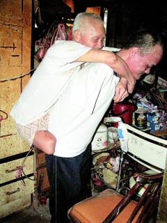 中新網(wǎng)6月15日電 據(jù)臺灣媒體報道,經(jīng)濟不景氣讓臺灣社會角落困苦無依的邊緣人有增無減。苗栗市文山里84歲里民蔡阿樟,今年初雙腳罹患烏腳病被迫截肢,兒子蔡錦云20多年前,工作時不慎觸及高壓電失去雙手,父子兩人“共享”雙手、雙腳相依為命,處境堪憐。