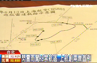 中新網(wǎng)6月16日電 據(jù)臺(tái)灣TVBS報(bào)道,兩岸直航以來(lái)發(fā)生第一次霸機(jī)事件,臺(tái)當(dāng)局民航部門拿出天氣惡劣的數(shù)據(jù)替FM801班機(jī)背書,不過(guò)但同一份數(shù)據(jù)卻掀開(kāi)一個(gè)不能說(shuō)的秘密,該班機(jī)“抄快捷方式”返航上海,回程穿越敏感的“R8禁航區(qū)”,成為兩岸直航客機(jī)飛越軍事空管區(qū)首例。
