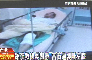 中新網(wǎng)7月16日電 據(jù)臺灣TVBS 報道,島內(nèi)跆拳道界相當(dāng)知名的教練吳朝勝,15日晚間從道館下課后突然被2名歹徒持棍棒攻擊,當(dāng)場倒地不起,民眾報警送醫(yī),據(jù)了解傷勢嚴(yán)重,左膝粉碎性骨折,一直到凌晨都還在手術(shù)。