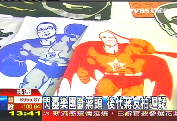 蔣介石、蔣經(jīng)國的肖像印在T恤上,身體卻是肌肉猛男、緊身衣加披風,“兩蔣”變超人,蔣友柏的設計公仔再度出擊,實在很鮮。