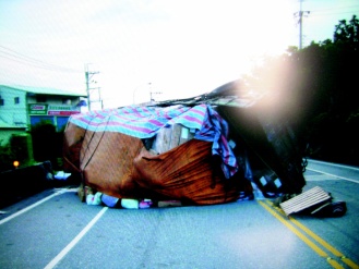 警方調(diào)查,住花蓮縣吉安鄉(xiāng)的余正輝是山本貨運公司司機,昨天清晨與助理林清華載賑災(zāi)物資到臺東太麻里;清晨四時五十分,大貨車行經(jīng)臺九線省道富里鄉(xiāng)石牌村彎道,突然失控翻車,滑行十多米撞上路旁護欄,余正輝被夾在駕駛座上,頭部變形,已沒有氣息。