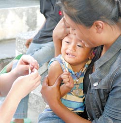 臺“行政院長”吳敦義昨日并前往高雄縣關切施打狀況。專家提醒,接種后應觀察30分鐘,二、三天后若有輕微發(fā)燒、全身無力等癥狀,應盡速就醫(yī)。