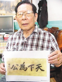 “今年七月,吳伯雄在北京湖廣會(huì)館一席話,我聽了很感動(dòng),決定把家族珍藏多年的孫中山先生‘天下為公’真跡,送返國民黨創(chuàng)黨起源地”。陶可望說,他是老國民黨員,“天下為公”是孫中山在北京湖廣會(huì)館所寫,就該由國民黨送返原地。