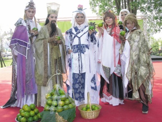 “竹崎水果節(jié)椪柑感恩祭”本周末舉辦兩天,昨天宣傳會(huì)邀請(qǐng)布袋戲偶像代言。竹崎鄉(xiāng)長(zhǎng)王焜弘兩任鄉(xiāng)長(zhǎng)任內(nèi)賣(mài)力促銷(xiāo)竹崎水果和觀光,每次都配合主題打扮成玉觀音、土地公等,昨天以布袋戲名人“素還真”扮相出現(xiàn),鄉(xiāng)親們爭(zhēng)相合影。