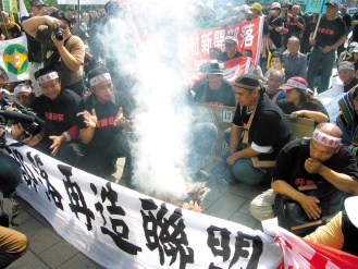 “88水災(zāi)”高雄縣少數(shù)民族部落再造聯(lián)盟,不滿“88水災(zāi)”已過百日,重災(zāi)區(qū)那瑪夏鄉(xiāng)、桃源鄉(xiāng)仍有1千多人,因道路、橋梁中斷,還回不了家,縣政府執(zhí)意把災(zāi)民遷村到杉林鄉(xiāng)月眉地區(qū),遠(yuǎn)離少數(shù)民族的故鄉(xiāng)和祖靈,昨天上午與六龜鄉(xiāng)新開部落溫泉區(qū)居民,一起游行到縣府抗議。