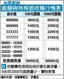 長(zhǎng)期從事錢幣收藏及研究的收藏家謝錫煌指出,包括新加坡、菲律賓等國(guó),早就把鈔票特別號(hào)拿出來(lái)公開(kāi)標(biāo)售,所得收益捐給公益團(tuán)體,島內(nèi)不妨比照辦理。
