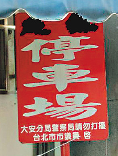 一家位于敦化南路、文昌街口的私設(shè)停車(chē)場(chǎng),竟然還掛著“警察局請(qǐng)勿打擾 臺(tái)北市議員啟”的招牌,用來(lái)恐嚇取締。