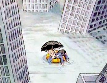 《±2℃》是去年8月“莫拉克”風災后開始籌款,耗資800萬元新臺幣,歷經(jīng)5個月拍成,片中模擬全球氣溫暖化使海平面上升6米,臺灣的嘉義東石、屏東林邊東港以及云林麥寮首當其沖地沉入海底。海水慢慢地從沿海向內(nèi)地淹沒,漫天浪花將101大樓吞食,全臺遭滅頂成為海底城市。