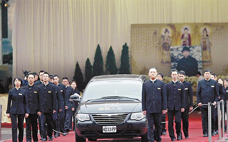 警方將部署逾300名警力搜證、交通疏導(dǎo),為擔(dān)心仇家相逢引發(fā)事端,還將加強(qiáng)監(jiān)控停車場。昨天承辦的龍巖人本禮儀公司此次將出動108輛黑頭車引領(lǐng)靈柩,昨還進(jìn)行演練。