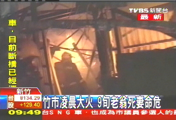 中新網(wǎng)4月26日電 據(jù)臺(tái)灣TVBS報(bào)道,26日凌晨2點(diǎn)多,新竹市凌晨發(fā)生一起死亡火警!一對(duì)高齡90歲的蔡姓老翁和88歲的妻子,被人發(fā)現(xiàn)他們的房子陷入火海,立刻打119報(bào)警,消防局出動(dòng)大批人力趕到現(xiàn)場(chǎng)搶救,但因?yàn)榛饎?shì)猛烈,老婦人全身90%以上二度灼傷,被送醫(yī)急救,有生命危險(xiǎn),而有糖尿病被截肢坐在輪椅上的丈夫,因?yàn)樘由患,不幸命喪火窟?table border=0 cellspacing=0 cellpadding=0 align=left>