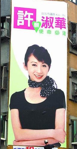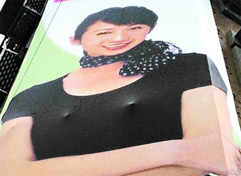 中新網(wǎng)5月19日電 據(jù)臺灣《蘋果日報》報道,臺北市信義路、松仁路口的臺北市議員許淑華競選廣告帆布廣告牌,于20多天前設(shè)立,因當時晚上施工的人員未拆下帆布后方凸出鐵條,導(dǎo)致廣告上胸部位置有兩點凸起,造成“激凸”效果。