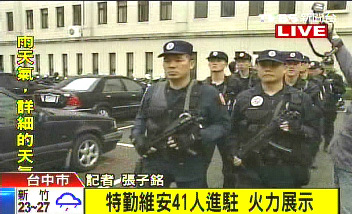 中新網(wǎng)6月2日電 據(jù)臺(tái)灣TVBS電視臺(tái)報(bào)道,臺(tái)中市接連發(fā)生重大刑案,維安特勤小組今日下午再次進(jìn)駐臺(tái)中市,每名特勤隊(duì)員都配備了精良的武器裝備。不過警方表示,這次維安特勤人員進(jìn)駐,穩(wěn)定力量將多過于實(shí)質(zhì)破案的績效。