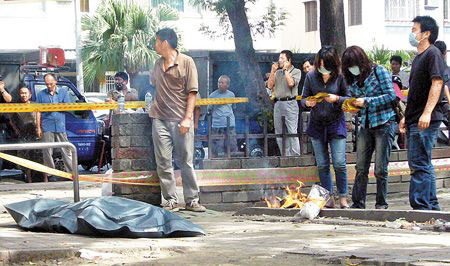 中新網(wǎng)6月10日電 據(jù)臺灣《中國時報》報道,臺灣高雄縣市交界的崗山仔地區(qū)9日中午連續(xù)傳出槍響,水果攤商翁文定為攤位糾紛,持槍在市場朝同行黃春生近距離開槍,隨后騎車往崗山仔公園,打手機給女性友人告知“我要自殺了”,就朝太陽穴開槍當(dāng)場斃命,黃姓男子則身中四槍被送往醫(yī)院急救,性命垂危。