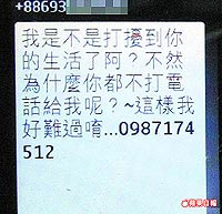 民眾藍(lán)先生昨日在臺(tái)北市議員李文英陪同下出面控訴,他十七歲兒子前天凌晨收到“為什么你都不打電話給我呢?這樣我好難過唷”短信,以為是同學(xué)而回?fù),翌日接獲電信業(yè)者通知暴增一萬八千多元通話費(fèi)。