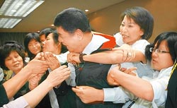 中新網5月11日電 據(jù)臺灣《中國時報》報道,臺“立法院”昨天(10日)首度針對開放陸生來臺、承認大陸學歷進行“有官員答詢”的委員會初審,一整天大小沖突不斷。朝野“立委”先為了臺“教育部長”吳清基請假不到吵架,下午又為延長開會時間潑水沖突。最后主席張慶忠在偷藏麥克風、拉扯、捂嘴的沖突中宣布完成“兩岸人民關系條例”修正草案初審。