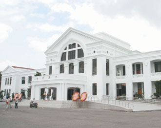 中新網(wǎng)7月21日電 據(jù)臺(tái)灣《聯(lián)合報(bào)》報(bào)道,臺(tái)灣中興新村“中興會(huì)堂”是巴洛克式建筑,加上白色的外觀,有“小白宮”的美名,因年久失修,臺(tái)當(dāng)局“內(nèi)政部營(yíng)建署”重新整修,20日完工啟用,讓不少員工重溫“小白宮”的風(fēng)采。