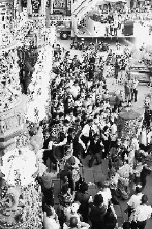 1至2日,廈門海滄青礁慈濟宮保生大帝神像在臺南市和臺南縣的三個宮廟進行了繞境巡游(右圖),并在其中兩個宮廟駐蹕。數(shù)以萬計的島內南部信眾簇擁恭迎,讓青礁慈濟宮交流團成員深深體會到了信眾的熱情,以及閩臺宗教文化交流的熱潮。