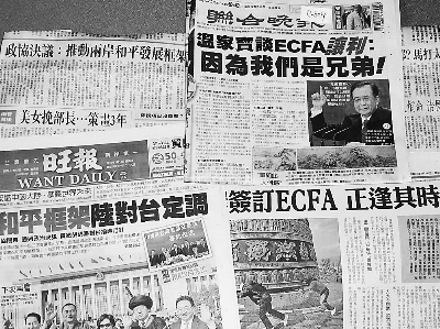 今天下午出版的《聯(lián)合晚報》在頭版頭條以《溫家寶談ECFA讓利:因為我們是兄弟》為題,圖文并茂報道了全國人大閉幕和溫家寶總理的記者會。《聯(lián)合報》特派記者汪莉絹因為在記者會上向溫總理提出了有關(guān)兩岸的問題,溫家寶總理對此進行了詳細解答,為此引發(fā)了島內(nèi)媒體的廣泛報道和熱烈討論。《聯(lián)合晚報》還在第二版幾乎用了整版,進行相關(guān)報道。