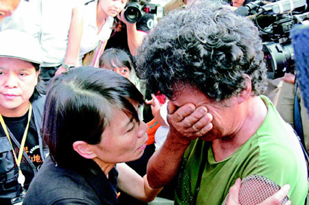 另外幾個地方,同樣有許多聲淚俱下的災(zāi)民,她依然不斷輕撫災(zāi)民的肩、背,撫慰大家:“我們一起面對困難,要堅強、勇敢地站起來,走出難關(guān)!