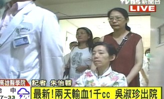 醫(yī)院表示,吳淑珍已經(jīng)回復(fù)到她往日的正常狀況,輸血并施打完鐵劑后,本來會(huì)希望病人住院多休息一天,但吳淑珍擔(dān)心醫(yī)院冷氣太冷,設(shè)備不全,不方便,堅(jiān)持出院,因此希望在療程后,可以回家休養(yǎng),醫(yī)院也會(huì)持續(xù)追蹤病情。