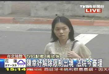 陳幸妤表示不能因此就不讓她出境,因為還是想去美國念書,且今年也許會有短期申請,審判長則說,屆時如果有需要再來申請即可。