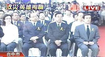 中新網(wǎng)8月19日電 據(jù)臺灣TVBS報(bào)道,臺風(fēng)“莫拉克”引發(fā)“八八水災(zāi)”重創(chuàng)臺灣南部,臺灣空勤隊(duì)3名英雄張順發(fā)、王宗立和黃鎂智為救人墜機(jī)殉職。臺中水湳機(jī)場19日舉行告別式,馬英九、“內(nèi)政部長”廖了以、臺中市長胡志強(qiáng)及呂秀蓮都到場致意。