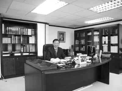 ;鶗k公室寬敞明亮。寬大的寫字臺上攤放著一些文件,筆、紙、膠帶等辦公用品。寫字臺的左邊書柜里裝著“連主席和平之旅”、“緬懷及經(jīng)貿(mào)之旅”各種剪報,“江陳會議新聞簡報”等。后面的書柜里裝著《中華人民共和國法律全書》、《兩岸經(jīng)貿(mào)》等書籍。和墻上的照片一樣,江董事長儒雅謙和,他每天都來這里上班。