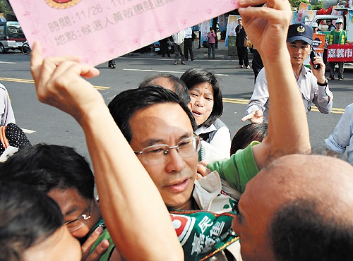 中新網(wǎng)11月25日電 據(jù)臺(tái)灣《聯(lián)合晚報(bào)》報(bào)道,臺(tái)灣“三合一”選舉活動(dòng)正式起跑,民進(jìn)黨嘉義市長候選人涂醒哲二十五日上午十點(diǎn)到國民黨嘉義市長候選人黃敏惠競選總部下戰(zhàn)帖,要求公開辯論,雙方發(fā)生激烈沖突,所幸無人有明顯外傷。