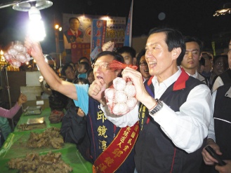 “新埔街上今晚最多人!迸阃瑨呓值男缕益(zhèn)長(zhǎng)賴(lài)江海說(shuō),秋冬晚上八時(shí)以后街頭冷清,昨晚全站出來(lái)。馬英九接著到二重夜市,夜市里民眾爭(zhēng)相與他握手,他看到蒜攤還拿起蒜頭高喊“凍蒜!”