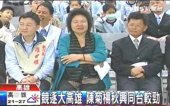 中新網(wǎng)12月14日電 據(jù)臺灣TVBS報道,樞機主教單國璽的新書發(fā)表會14日在高雄舉行,有意參選大高雄市長的現(xiàn)任縣市長陳菊跟楊秋興,一前一后到了會場,卻沒有太多互動。對于明年誰參選,楊秋興傾向協(xié)調(diào),陳菊也很有風度地說,兩人情誼三十年,她輸了就會幫楊秋興輔選。