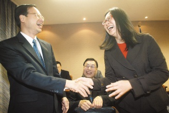 中新網(wǎng)12月17日電 第四次兩岸兩會領導人商談即將登場,;鶗麻L江丙坤日前接受臺灣《聯(lián)合晚報》專訪。對于在野黨發(fā)動群眾抗議,江丙坤憂心表示,如果繼續(xù)內(nèi)耗下去,他擔心臺灣是否會變成菲律賓第二,他期待朝野坐下來,好好地談一談,大陸的崛起、全球化與全球暖化以及區(qū)域整合、韓國的競爭等議題。
