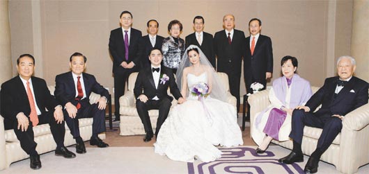 這場(chǎng)在臺(tái)北君悅飯店舉行的婚宴晚間6時(shí)入席,黑頭車整晚川流不息,媒體的閃光燈也閃個(gè)不停。