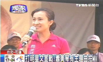 蕭美琴打選戰(zhàn),有專屬主題曲,還拍攝MV:蕭美琴在花蓮的家出發(fā),粉紅色面包車當宣傳車,素人入鏡,搭配光影交錯技巧;其實幕后操刀作詞曲、拍MV的,是某位女性天王級歌手的制作人和導演友情贊助。