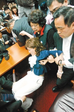 9時17分,會議主席趙麗云昏倒,國民黨“立委”協(xié)助送臺大醫(yī)院;9時50分,受傷的民進黨“立委”管碧玲、陳亭妃也由同黨籍“立委”陪同,搭救護車前往臺大醫(yī)院就醫(yī)。