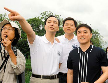 中新網(wǎng)5月31日電 據(jù)臺灣《聯(lián)合報》報道,臺北縣長周錫瑋30日邀臺北市長郝龍斌、新北市長參選人朱立倫訪視臺北縣浮洲濕地,為年底選舉造勢,互勉要把淡水河整治得更干凈。郝龍斌對三人合作形成“郝錫立(好犀利)”表示,“第一次聽到,不錯呀!”,周錫瑋不忘補充廣東話叫“猴塞擂呀!”