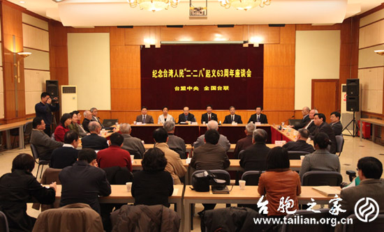 中新網(wǎng)2月25日電 據(jù)“臺胞之家網(wǎng)”消息,2月25日上午,臺盟中央、全國臺聯(lián)在臺盟中央禮堂召開了紀(jì)念臺灣人民“二·二八”起義63周年座談會,緬懷“二·二八”起義中犧牲的革命先烈,弘揚(yáng)臺灣同胞愛國愛鄉(xiāng)的光榮傳統(tǒng),暢談兩岸關(guān)系和平發(fā)展的前景。