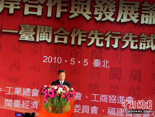 中新網臺北5月5日電(記者 董會峰 羅欽文)福建省長黃小晶5日下午在臺北表示,閩臺合作先行先試重在于“行”,他披露了新形勢下打算采取的十個方面先行先試政策措施。