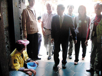 中新網(wǎng)11月14日電 民進(jìn)黨參選人謝長廷昨天到臺中縣豐原市慈濟(jì)宮參拜時(shí),被媒體拍到與乞丐擦身而過的畫面。