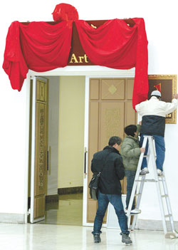 此外,館內(nèi)有關(guān)“中正”二字的展示廳牌匾皆用紅布覆蓋,館長曾坤地不愿透露大廳如何布置。
