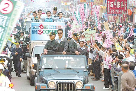 陳水扁這場選舉造勢秀,只有短短幾分鐘的行程,卻讓臺南市警方如臨大敵,一早就動員大批警力,將周邊道路整個“掃過一次”,還要求附近所有設有監(jiān)視器的商家把鏡頭轉(zhuǎn)向,調(diào)向大馬路。臺南市警方投入上千名警力,采取“三步一崗、五步一哨”方式進行安全維護工作,并穿插便衣刑警,全程監(jiān)控。