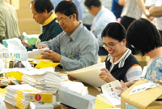 據(jù)臺(tái)灣《聯(lián)合晚報(bào)》報(bào)道,島內(nèi)第一大縣臺(tái)北縣共有282萬多名選舉人,共印制1145萬多張選票,全臺(tái)最多;臺(tái)北市其次,共812萬張;高雄市選票也有462萬張選票,都創(chuàng)下歷次選舉之最紀(jì)錄,若換算成重量,光是這三個(gè)地方的選票就重達(dá)65噸,相當(dāng)驚人。