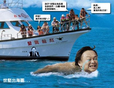 對(duì)于跳海計(jì)劃大陣仗,王世堅(jiān)今天上午也坦承,有好幾百個(gè)人報(bào)名,其中有很多是多年的朋友,也有很多年紀(jì)都很大了,所以當(dāng)初尋找適當(dāng)?shù)臅r(shí)間和地點(diǎn),很是費(fèi)了一番功夫。他今天更證實(shí),的確選在28日,計(jì)劃前往臺(tái)北萬(wàn)里瑪鋉魚(yú)港跳海。