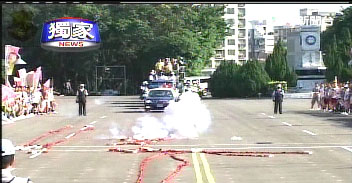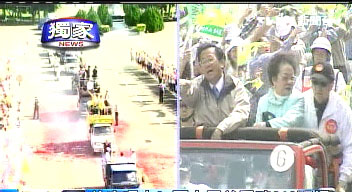 陳水扁和呂秀蓮的競(jìng)選車隊(duì)經(jīng)過(guò)臺(tái)南市金華街,之所以布置這樣一個(gè)情境,為的就是嚴(yán)防“319槍擊事件”再度上演。
