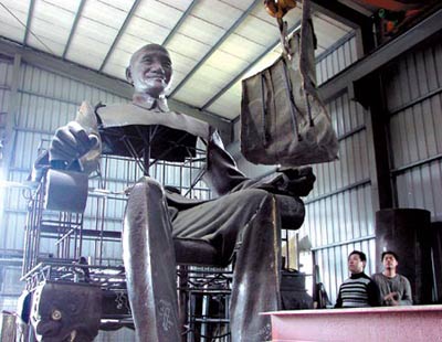 中新網(wǎng)3月4日電 號(hào)稱全臺(tái)最大的原在高雄的蔣介石銅像拆卸后送大溪鎮(zhèn)公所,經(jīng)過桃園縣等單位協(xié)調(diào),預(yù)計(jì)本周運(yùn)往大溪慈湖兩蔣文化園區(qū)焊接、補(bǔ)強(qiáng)、組合。據(jù)悉,新的銅像將“虛位”在民眾面前,不過這種后現(xiàn)代解構(gòu)主義的創(chuàng)造聽在原創(chuàng)者林木川的耳朵里,直說“簡(jiǎn)直不倫不類”,感覺似乎被五馬分尸。