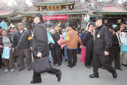 另外,吳家政、黃文典二人雖然避開警方的查訪,行蹤飄忽不定,但經(jīng)由調(diào)查單位的通報,警方已掌握住他們行蹤,且?guī)Щ鼐皆儐栠^,監(jiān)控的行動將持續(xù)到投票日之后。不過,遭“國安”單位點名危安對象的黃文典、吳家政兩人19日都出面喊冤,否認(rèn)有任何暴力企圖。