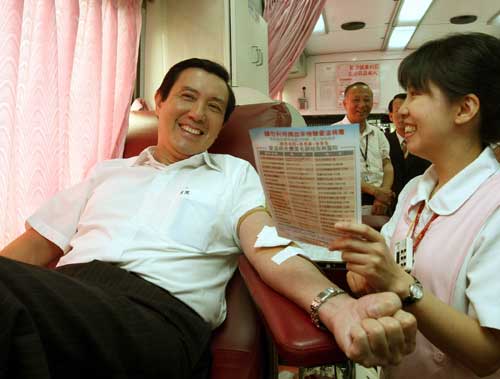 據(jù)“中央社”報(bào)道,馬英九23日參加捐血活動(dòng)并接見全臺(tái)40位績優(yōu)捐血人,其中40歲的崔德龍(分離術(shù))捐血達(dá)911次、60歲的鄭敬瀚(全血)捐血達(dá)241次。
