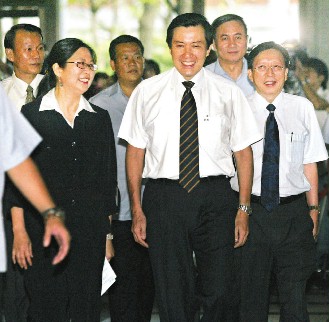 馬英九昨天下午連同臺(tái)當(dāng)局“行政院長”劉兆玄、“國安會(huì)”副秘書長高長等人視察“陸委會(huì)”,“陸委會(huì)”科長以上層級(jí)官員全數(shù)出席,聽取馬英九演講;;鶗(huì)因?yàn)槎麻L江丙不在島內(nèi),由秘書長高孔廉、副秘書長林淑閔率領(lǐng)各處室主管在座。