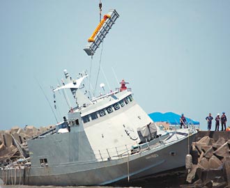 中新網(wǎng)9月27日電 臺(tái)“光華6號(hào)”導(dǎo)彈快艇因執(zhí)行“漢光演習(xí)”任務(wù)而意外擱淺在嘉義布袋港外,經(jīng)過(guò)一天搶救還是無(wú)法拖離,海軍方面26日只得先找來(lái)吊車(chē)把4枚導(dǎo)彈先拆除、吊走,一方面確保導(dǎo)彈安全,一方面減輕重量,希望能在漲潮時(shí)讓快艇脫困。