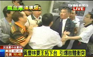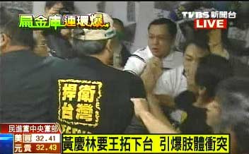 發(fā)表評論  中新網(wǎng)10月13日電 民進(jìn)黨秘書長王拓指陳水扁違反民進(jìn)黨大是大非的一席話,不僅引起陳水扁反批,今日(13日)更在黨內(nèi)嚴(yán)重爆發(fā)分裂危機。民進(jìn)黨臺北市黨部主委黃慶林上午前往中央黨部找王拓理論,雙方人馬當(dāng)場就互相拉扯,爆發(fā)嚴(yán)重沖突。